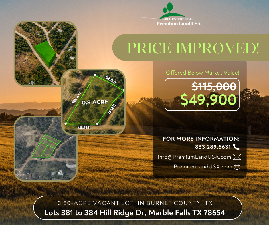 PRICE IMPROVEMENT!! This isn’t just another patch of land. This is four lots bundled into one high-elevation opportunity, just 13 minutes from Marble Falls and under 90 minutes from Austin. Whether you’re looking to invest, relocate, or develop, this 0.8-acre site delivers flexibility, location strength, and long-term upside.